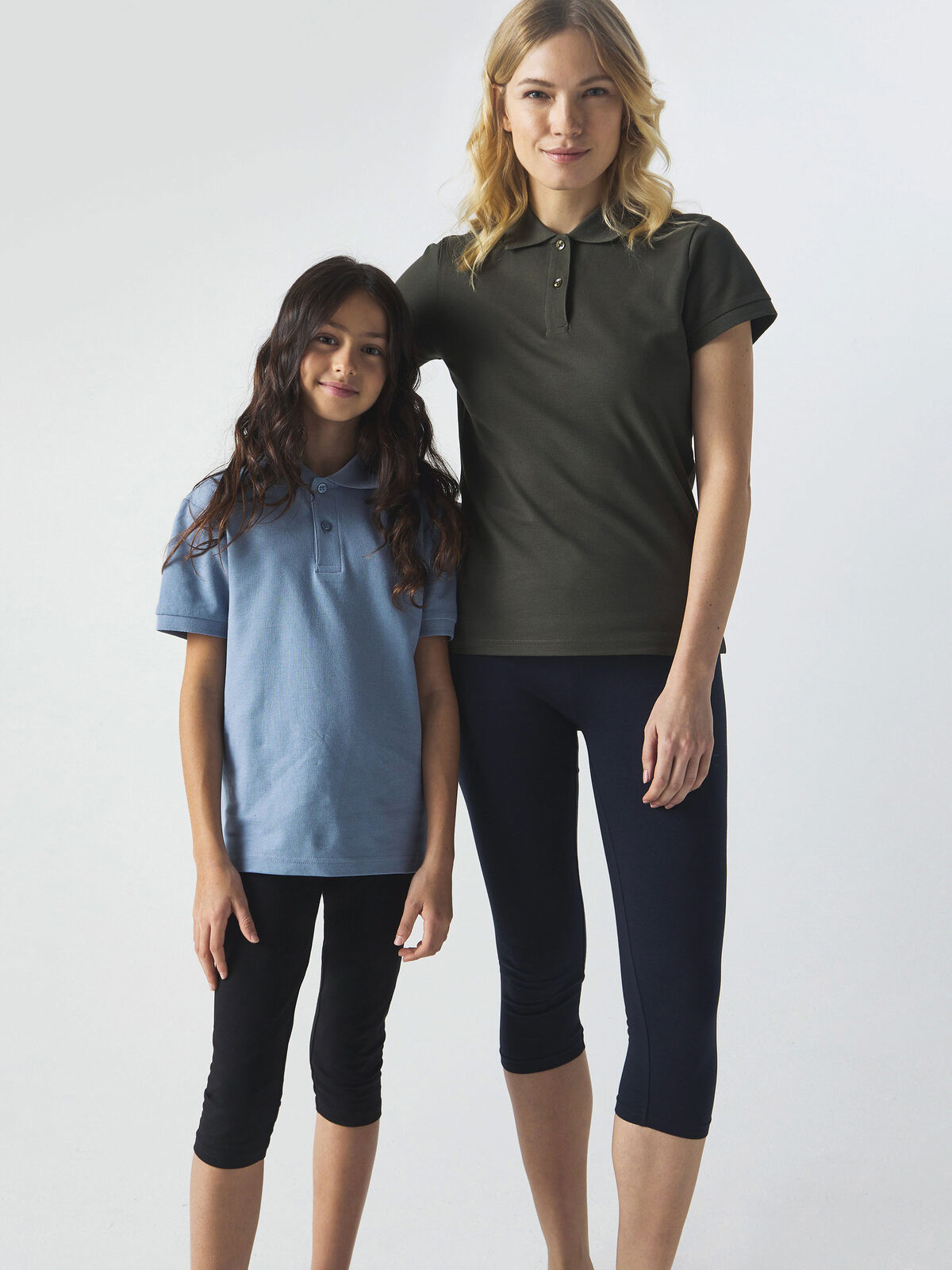 92% cotton, 8% elastane. Women's single jersey calf leggings, elasticated waist, contoured fit, double-needle stitching, seamless outer leg. Tear-off label.
