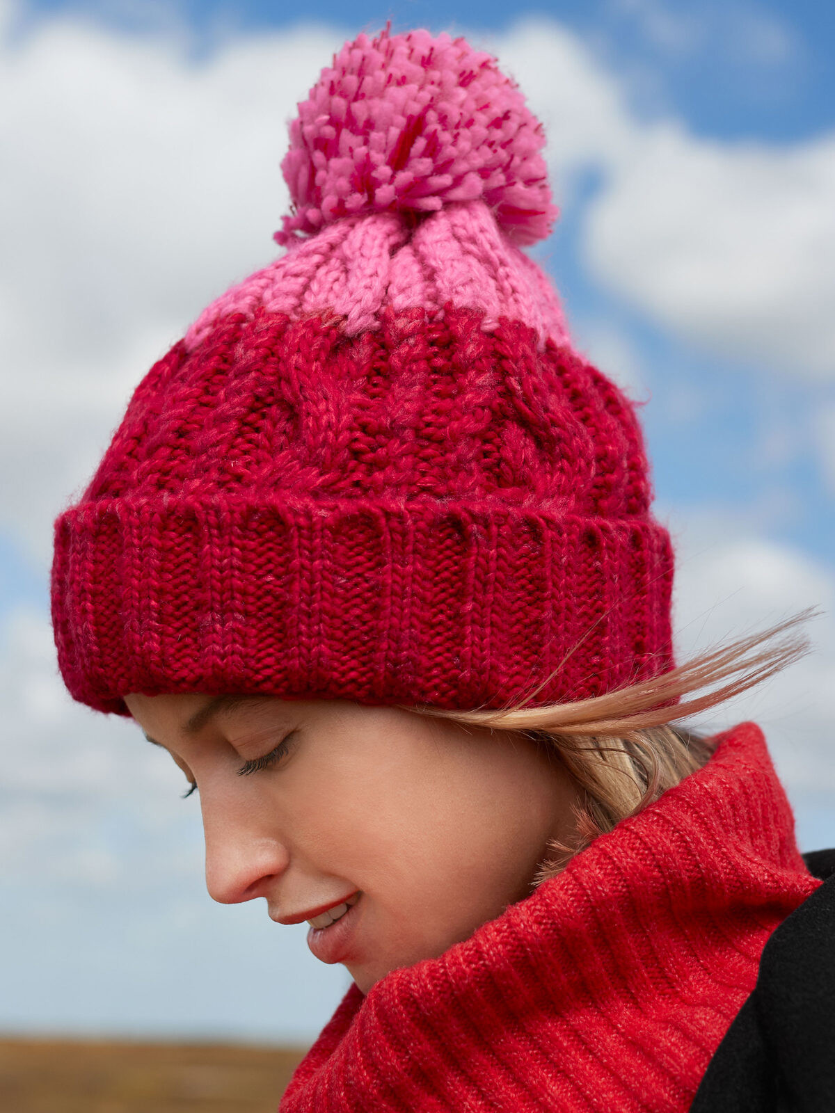 100% Soft-Spun Acrylic. Apres beanie, TearAway label for ease of rebranding, heavyweight multi yarn cable knit design, bold two colour design. Luxury pom pom, luxurious Shearling thermal band for extra warmth. Cuffed design for optimal decoration.