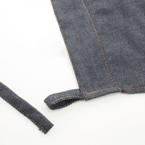 Modern apron with brand new design, not only for its structure, but also forits fabric. Made of jeans fabric with sewings in ochre shades, providing theDenim effect which is trending nowadays.Adjustable both around the hips an the neck.<