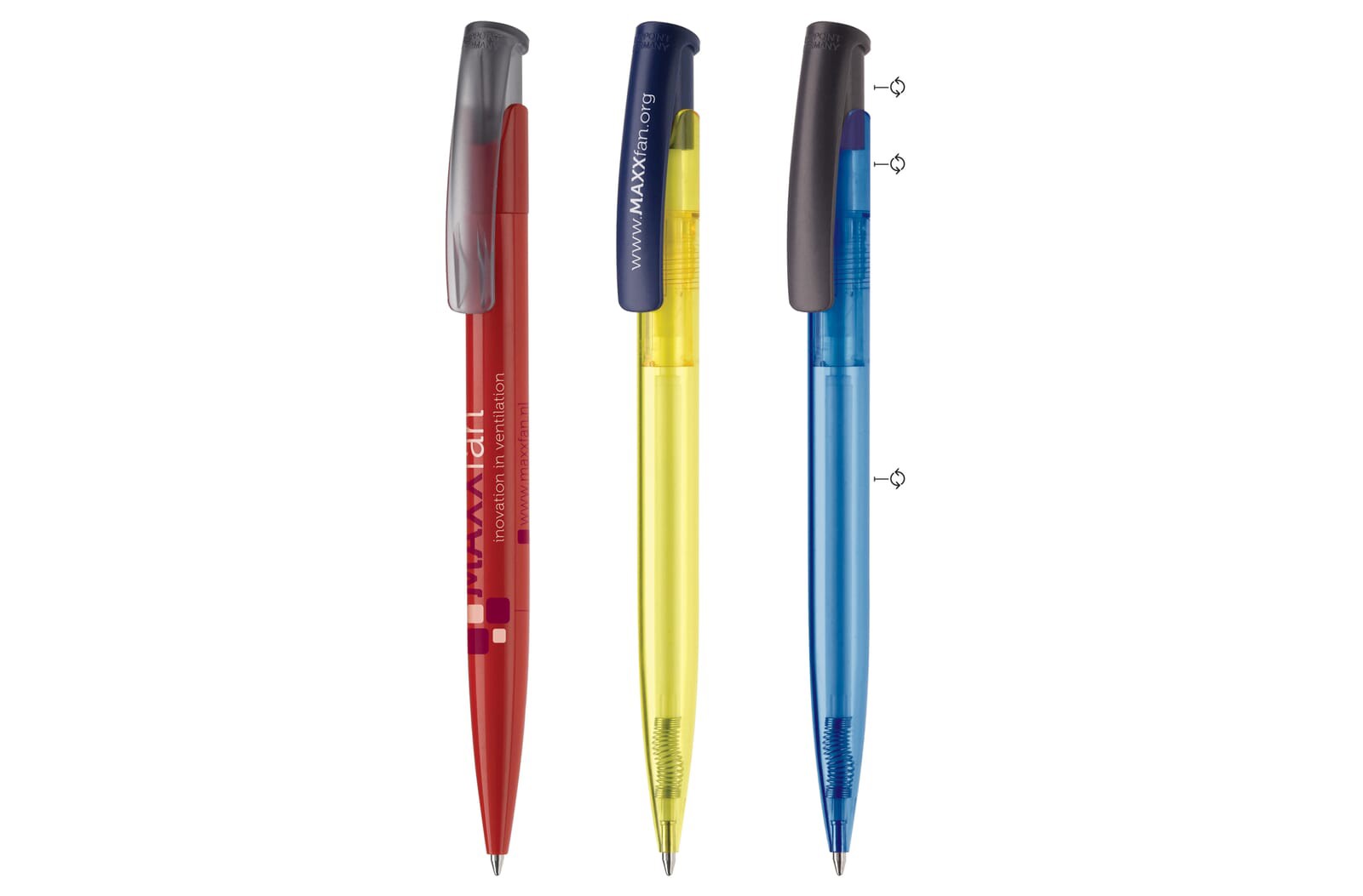 Equipped with a jumbo refill, each pen delivers up to 4.5 kilometers of smooth writing – making it an enduring companion in meetings, notes, and everyday use. Choose from four writing colors – blue, red, black, or green – to suit your branding needs. The pen operates via a push mechanism and offers the opportunity to mix and match hard and transparent parts, allowing you to create a truly customized design that reflects your company's identity.