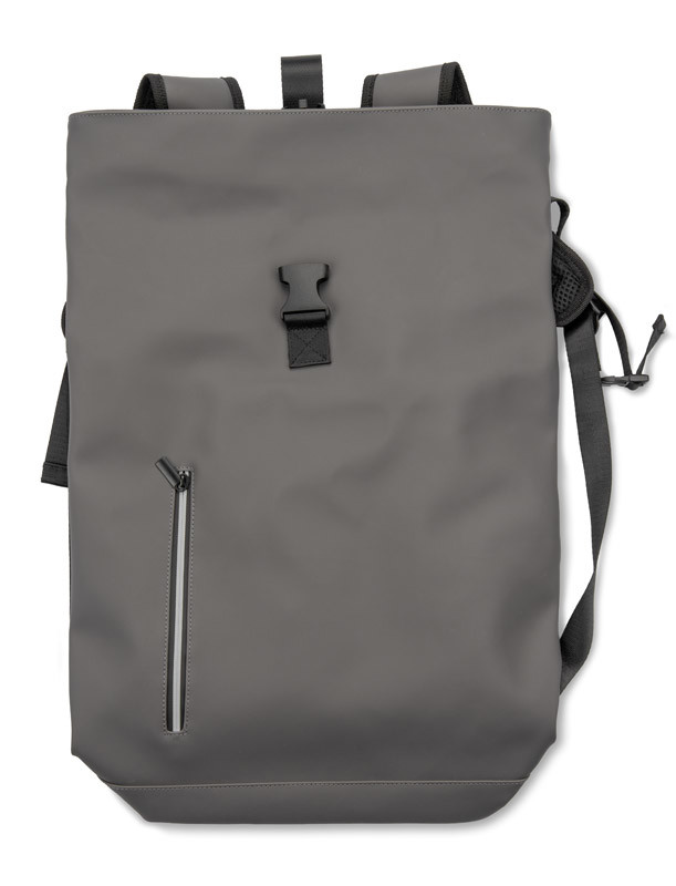 RULO is a rucksack made of top-quality waterproof material that effectively protects the contents from rain and moisture. The backpack's main compartment is closed with a zip, which can be rolled up and additionally secured with a plastic snap. The interior, lined with soft cotton lining, conceals two practical pockets for small items to facilitate organisation. Thanks to the special mesh on the back, the RULO provides excellent ventilation and wearing comfort, even on long walks. The distance fabric, which does not absorb water and dries quickly, makes the backpack ideal for all weathers. There is a hidden laptop pocket on the back side, zipped for easy access and extra security. The pocket is suitable for laptops with a screen size of up to 15.6 inches, making the backpack a practical solution for users of standard size laptops. On the outside of the backpack there is a small pocket for small items, zipped and trimmed with reflective fabric for increased visibility and user safety.