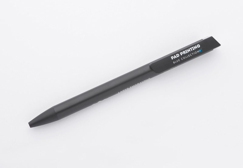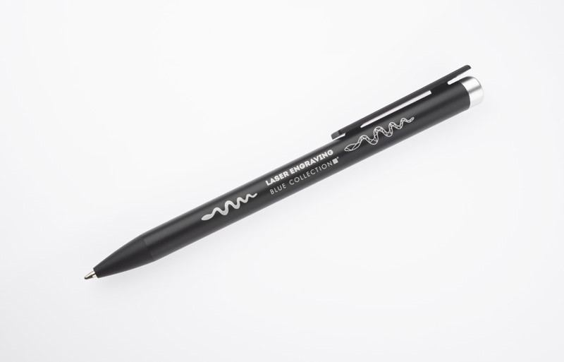 ALI is a unique pen for marking in the similar colour to the tip of the pen and completely surprising 2 colour engraving - in the similar colour to the tip and white colour (aluminum colour). Black metal barrel and black finish provide the ideal background for the colour engraving. An automatic pen. X20 type blue 1.0 mm-thick refill.