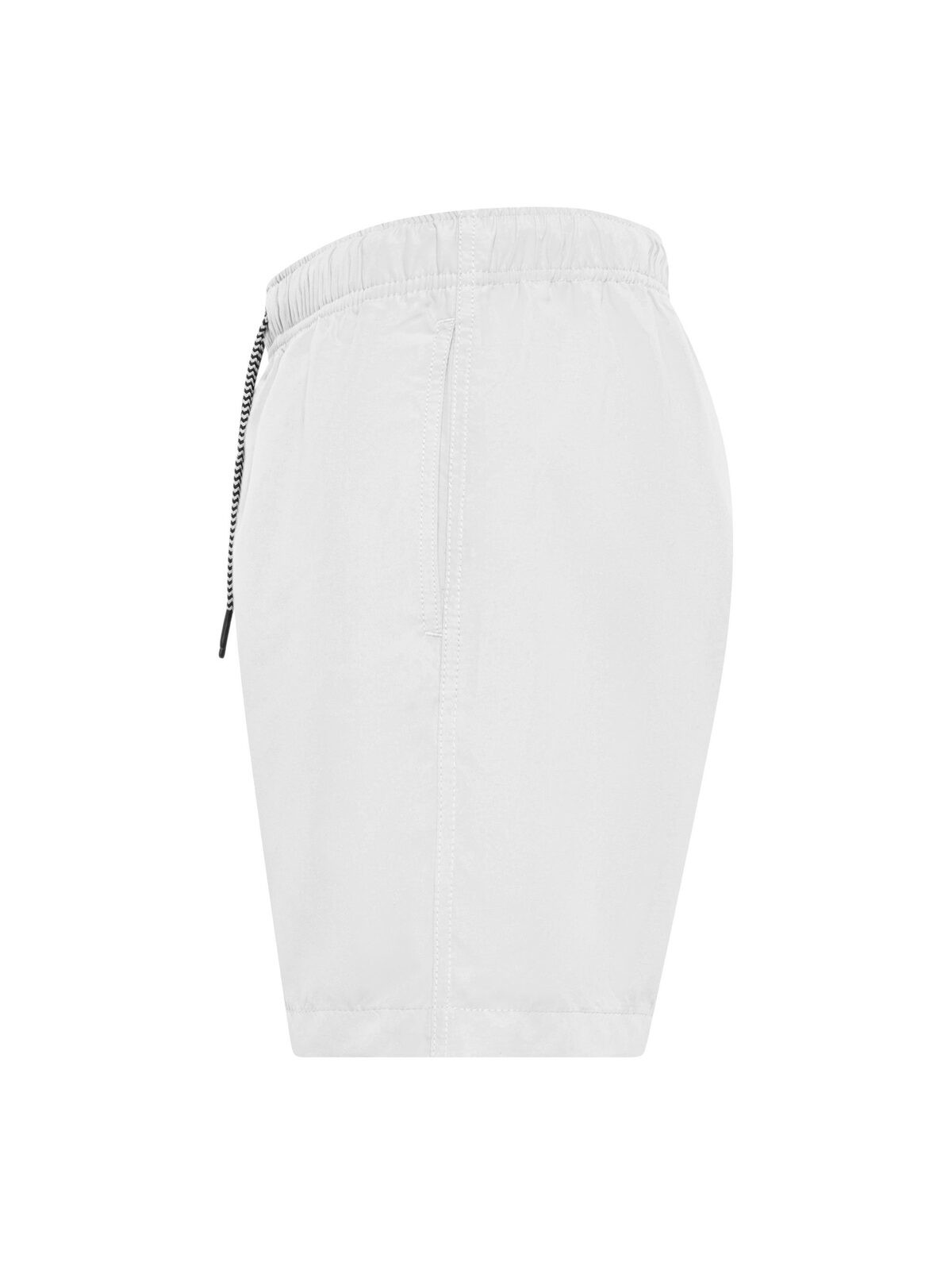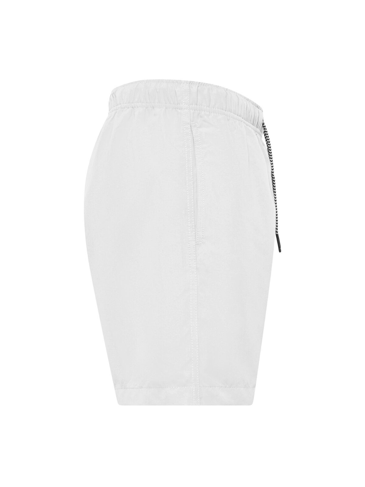 100% recycled polyester. Men's swimsuit in recycled polyester, quick drying. Tone-on-tone mesh internal briefs. 2 side pockets, welt back pocket with Velcro closure, eyelets and drawstring in contrast with metal tips. Washable at 30°C. Tear-Away label.
