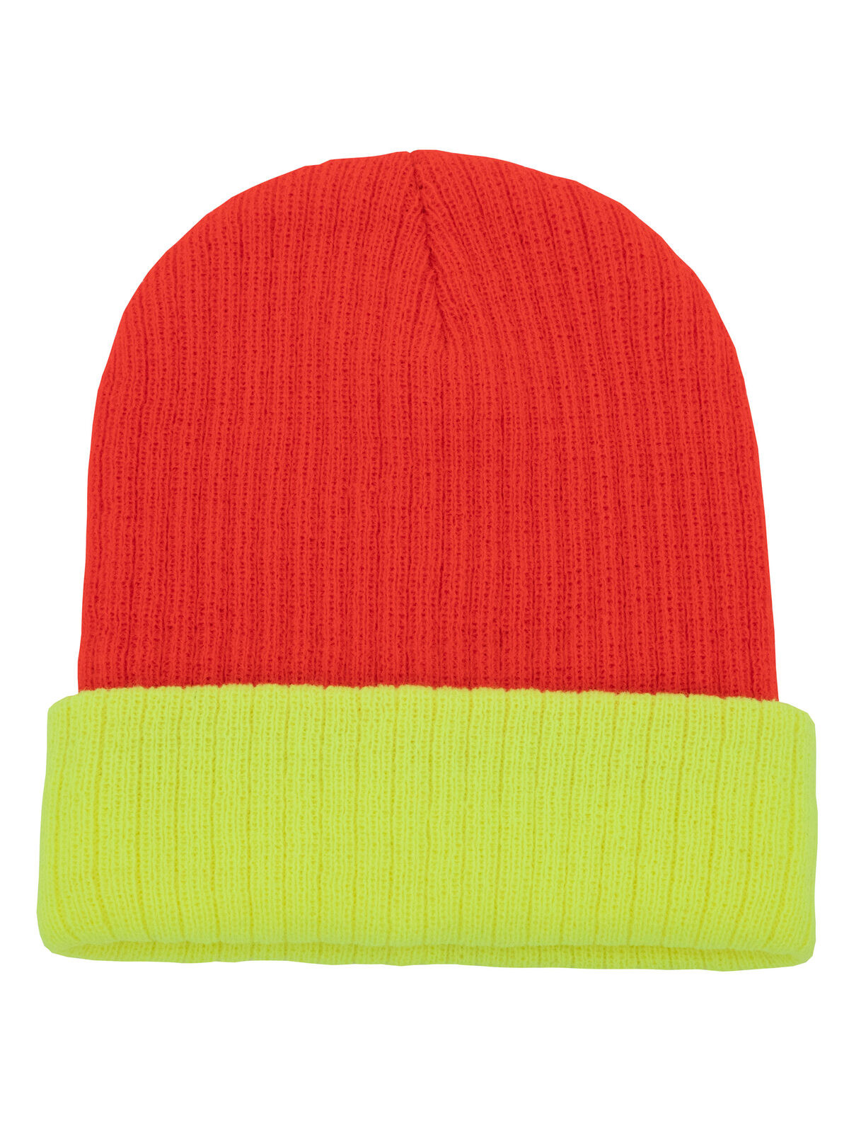 100% Polyacryl. Double knit beanie with contrast colour cuff. Custom stitchable. Soft feel for a comfortable feel. Two-tone. One size fits all.