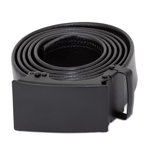 Modern black belt with a precision adjustment system without holes, ensuring maximum comfort and precision.