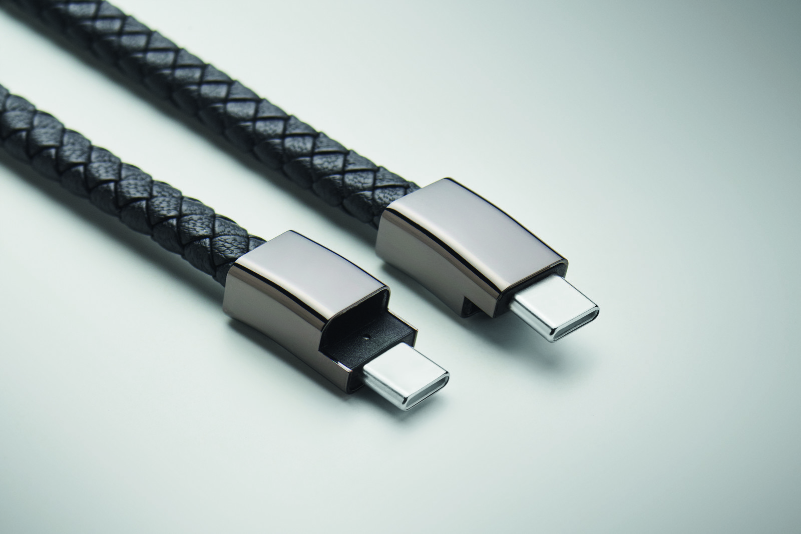 Bracelet with charging cable 60W type-C to type-C in PU with zinc alloy braided detail. Wrist circumference approx.: 21 cm.