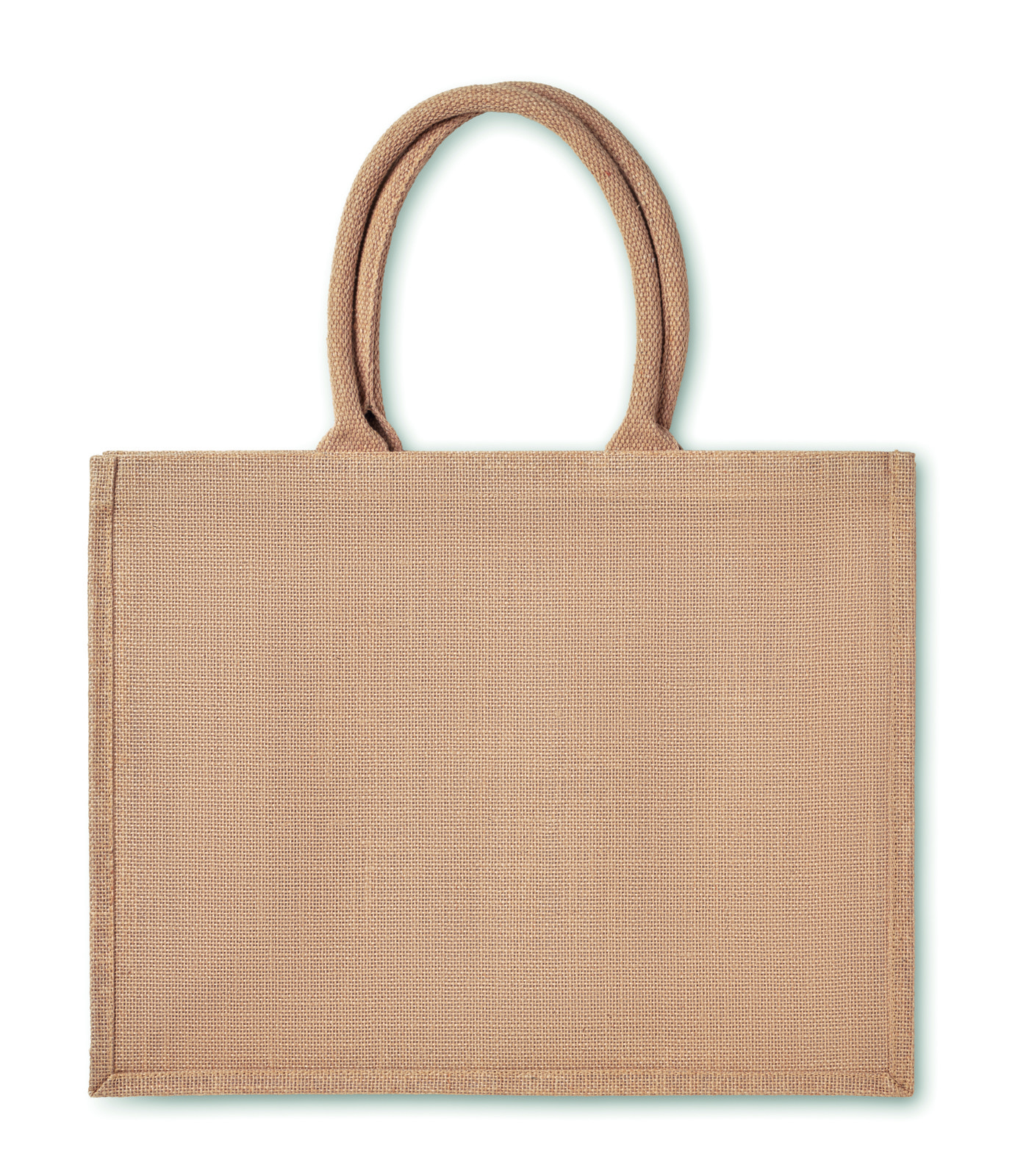 Elevate your brand with the Jute Shopping Bag Brick Lane – a sustainable, stylish, and functional gift that speaks volumes. Made from high-quality jute and enhanced with a soft, cotton-padded laminated interior, this reusable bag offers both durability and comfort. With its short handles and compact, yet roomy dimensions (400mm x 170mm x 325mm), it's the perfect companion for everyday shopping or corporate events.