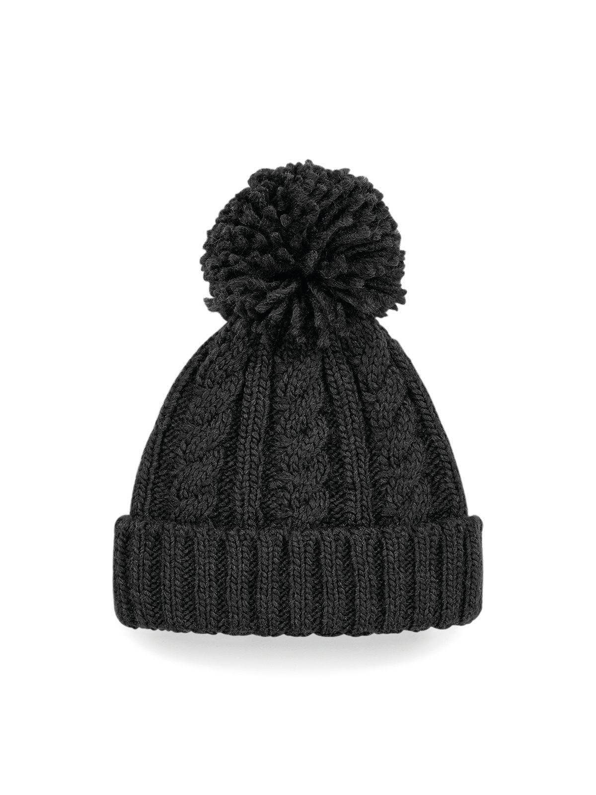 100% soft-touch acrylic. Heavyweight melange cable knit beanie, self-coloured pom pom, hand-knitted feel. Suprafleece thermal band, cuffed design for optimal decoration. TearAway label for ease of rebranding.