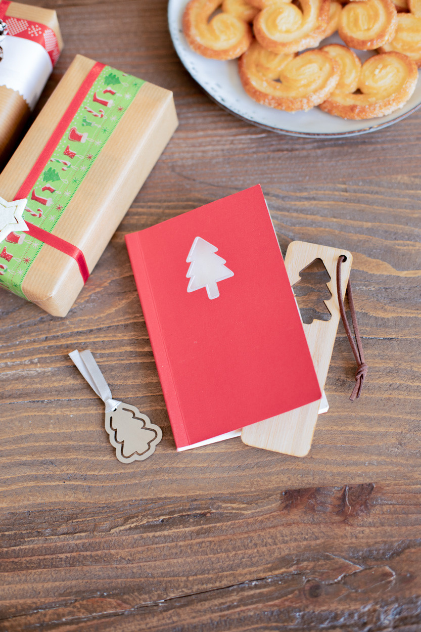 Bamboo plywood bookmark with die-cut Christmas motive and PU leather cord.