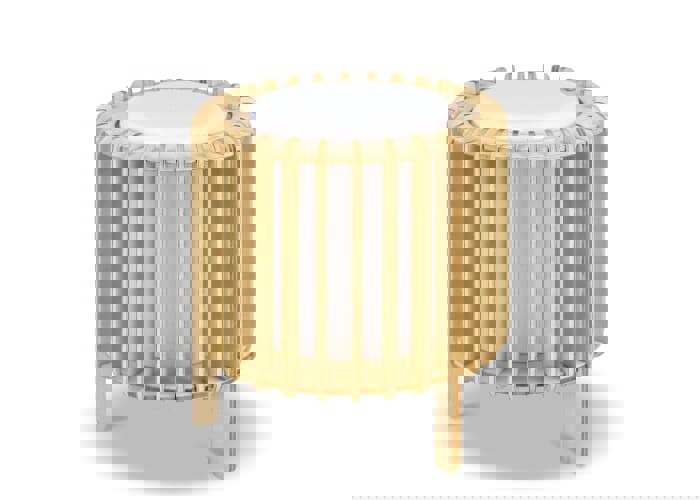 The Coollux Lamella Luna combines Scandinavian elegance with natural warmth. Featuring straight, recognizable vertical wooden slats and three wooden legs, this compact lamp is practical and versatile. The dimmable LED light provides a pleasant, adjustable glow. Made from partially recycled materials, it includes a rechargeable battery and charging cable.
