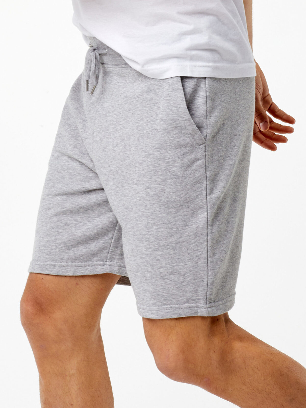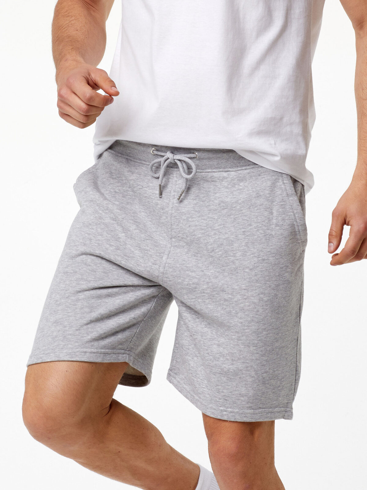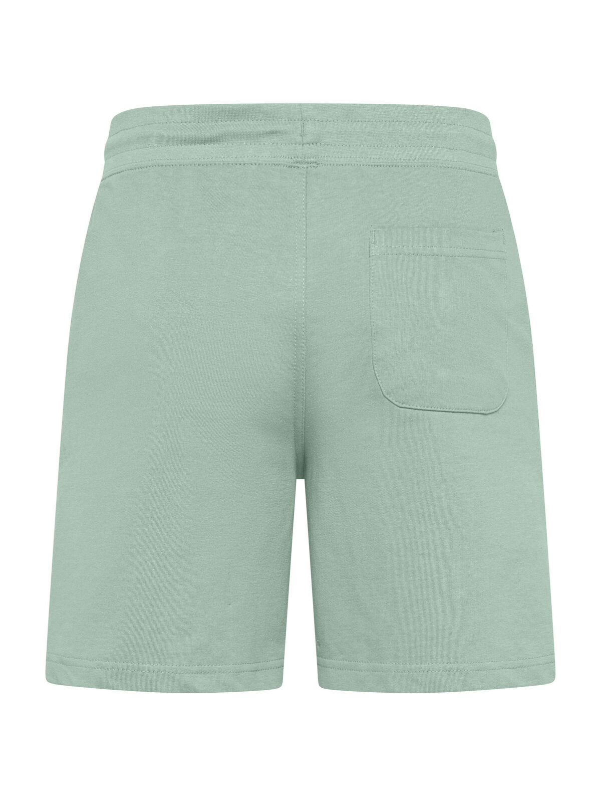 80% cotton, 20% polyester. French Terry jogger shorts, pocket lining in single jersey, back patch pocket, 1x1 rib waistband, dyed to match round drawcord with metal tipped ends, metal eyelets, double needle topstitching. Tear-Away Label.