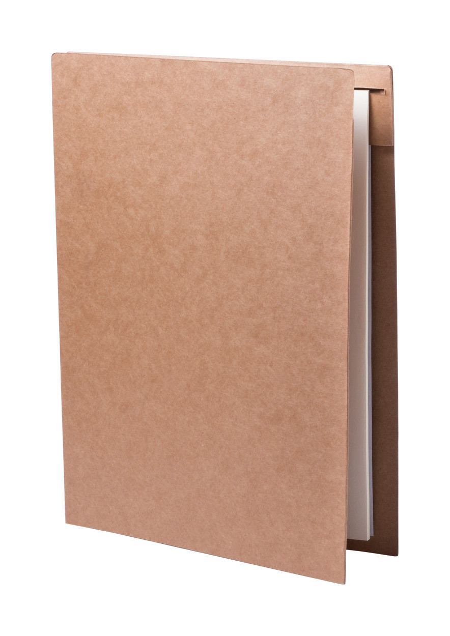 Recycled paper document folder with 20 blank sheets notepad and ballpoint pen. With blue refill.