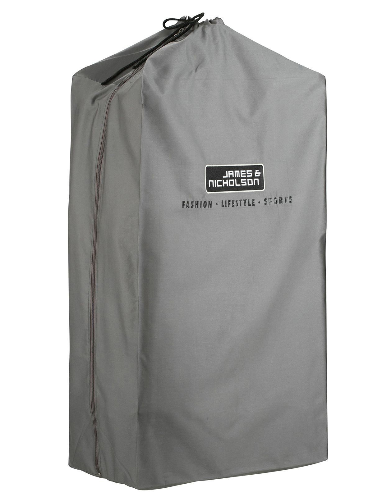 65% polyester, 35% cotton. Garment bag with embroidered Daiber logo, suitable for 8-12 coat hangers, long zip closure, additional cotton/ polyester cord. Dimensions: 90x50x30 cm.