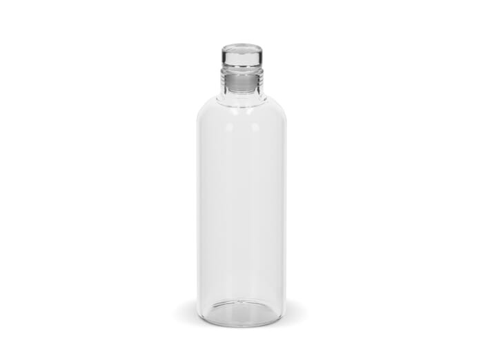 Use this crystal clear borosilicate glass bottle for drinking, mixing, or serving your favorite drinks. The sleek glass bottles feature a flexible stop to prevent spills and preserve your drinks. The absence of visible joints or seams enhances its sleek, elegant design, making it a refined choice for any occasion.