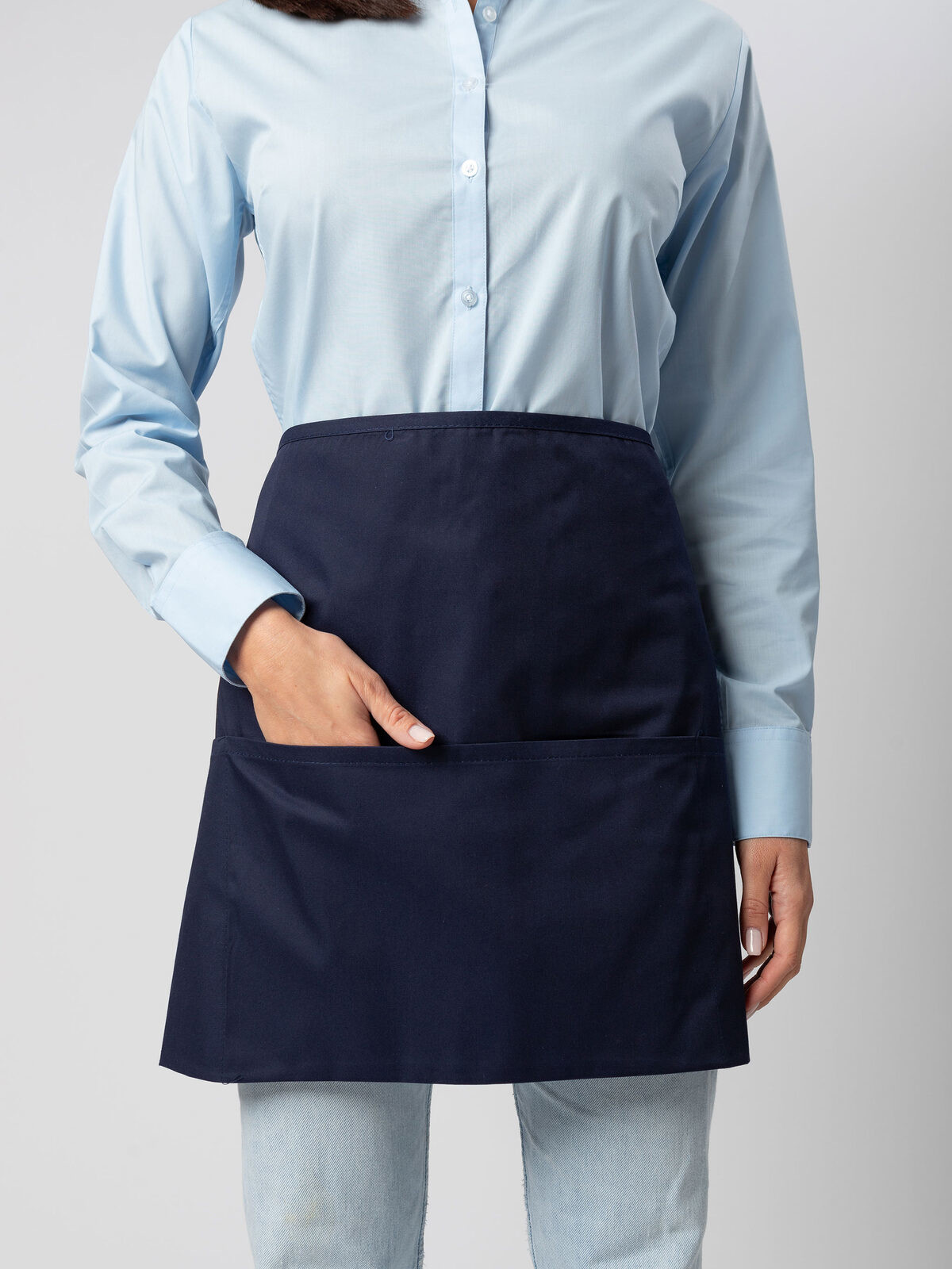 Choose the Jared short apron to combine functionality, stylish presentation, and a professional brand impression — your team and your image will thank you.