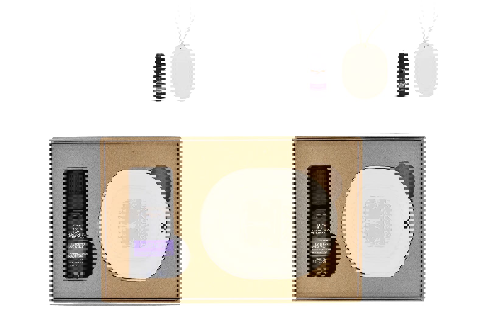 The InSideOut Aroma Gift Set features a porous hanger that subtly diffuses the natural scent of lavender with a few drops of pure oil. Ideal for small spaces like the bedroom, bathroom, or wardrobe. A luxurious hanging cord is included in the beautiful gift box, which fits through almost any letterbox.
