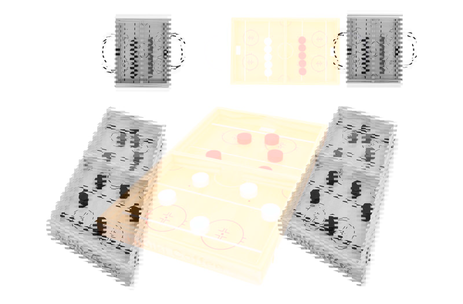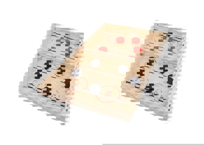 Discover the exciting Sling Puck game from InSideOut, perfect for young and old! This interactive table model offers hours of fun for two players. The goal is simple: use the elastic to shoot all five pucks to the other side of the board before your opponent does. The fast-paced action of the game tests your reflexes and promotes the development of reaction time and hand-eye coordination. The compact design makes it ideal for home, on vacation or at parties. This game brings more than just excitement and fun. A fun game for birthdays, holidays or any special occasion!