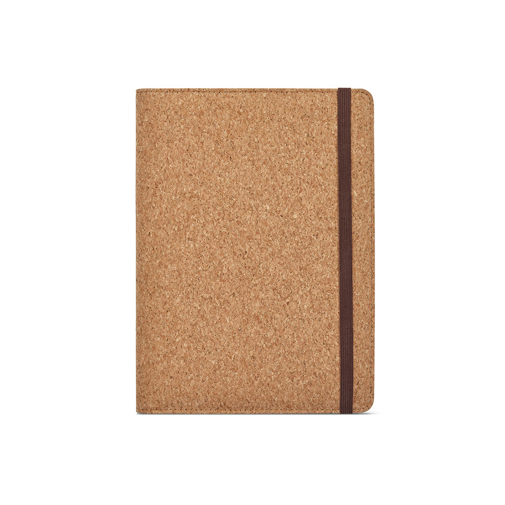 Kafka cork A5 folder includes an elastic closure, a pad of 64 sheets of FSC ivory dotted paper (70 gsm) each with a designated space for date and page number, a phone pocket (up to 10 x 18cm), a double pen holder and 2 card slots. Stay eco-conscious and organized. Packed inside an individual kraft box.