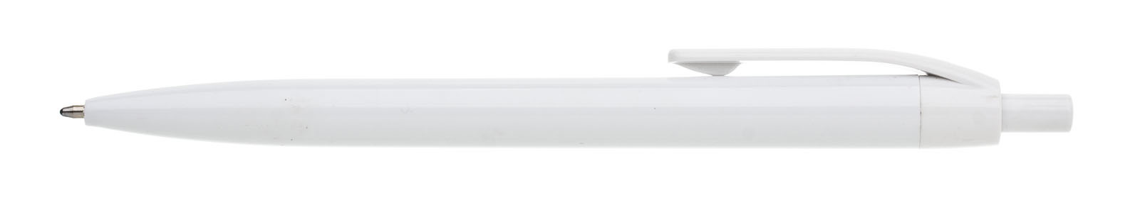 Plastic ballpoint pen LIDO has a white body and a white clip. Refill X 20-10,6 cm, blue writing.