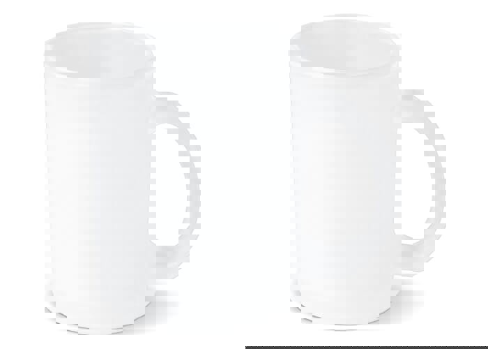 This substantial glass mug features a frosted finish that adds a unique and stylish look to your drinks. This mug is designed with a special coating to facilitate sublimation printing.