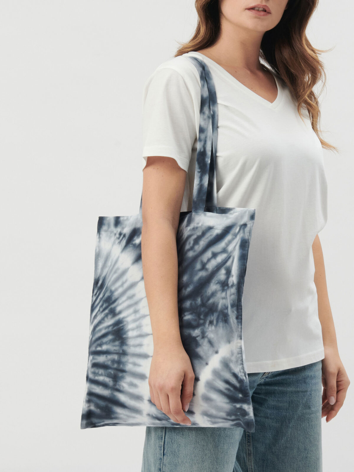 100% organic cotton. Shopper in eco-sustainable cotton with 67 cm long handle. Ironed product for better printability. Removable label. Size: 38x42 cm. Printable area: 28x34 cm.