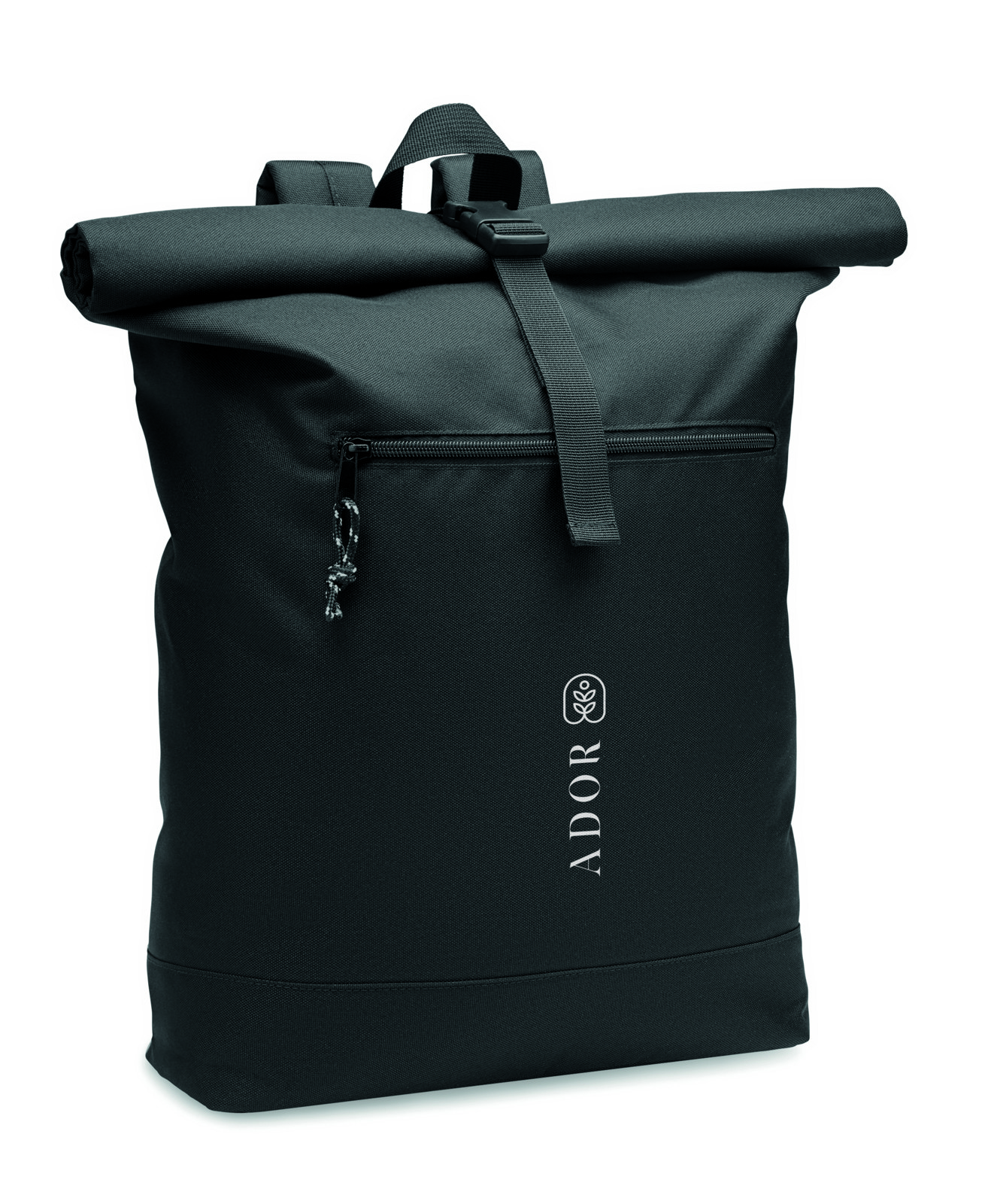 Ideal for daily commutes or travel, it features a functional rolltop closure, a zippered front pocket for easy-access essentials, and a robust, reinforced bottom for added durability. The inner lining is crafted from 210D RPET, enhancing its eco-friendly credentials without compromising on design.