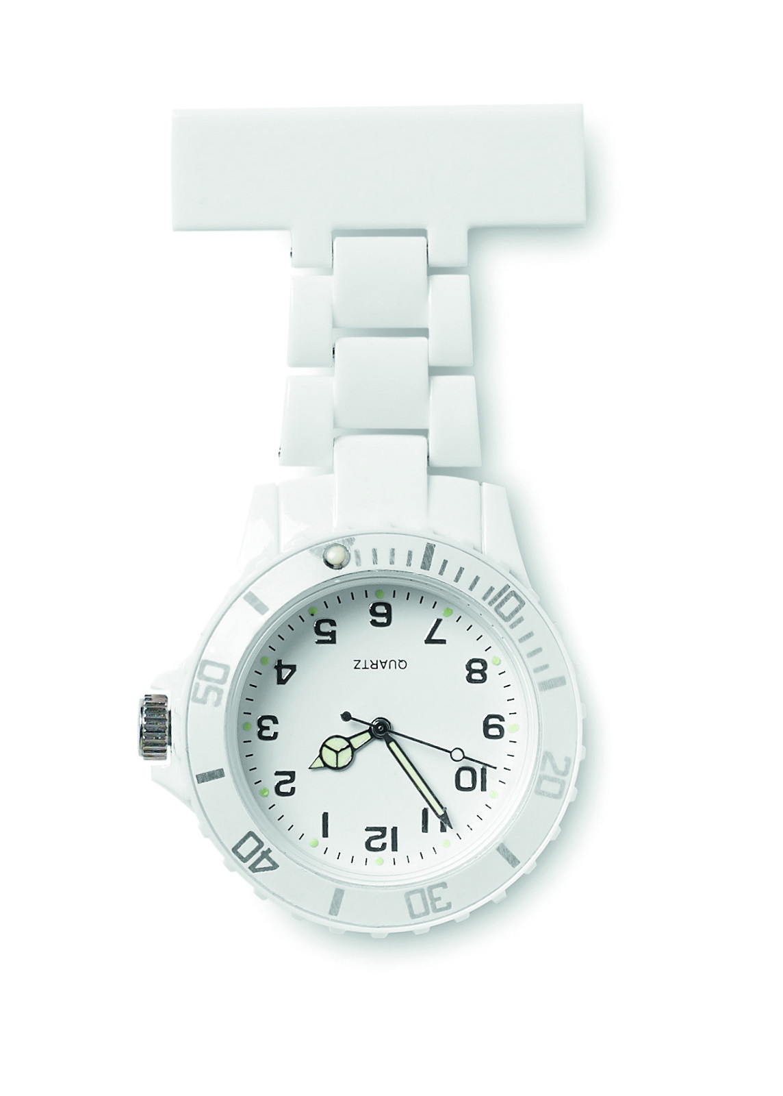 Crafted from durable PET material, it is lightweight at just 22 grams, ensuring all-day comfort during long shifts. Its convenient size — 80 mm in width, 12 mm in height, and 40 mm in diameter — makes it easy to clip onto uniforms, offering nurses and medical staff a reliable way to keep time hygienically and efficiently.