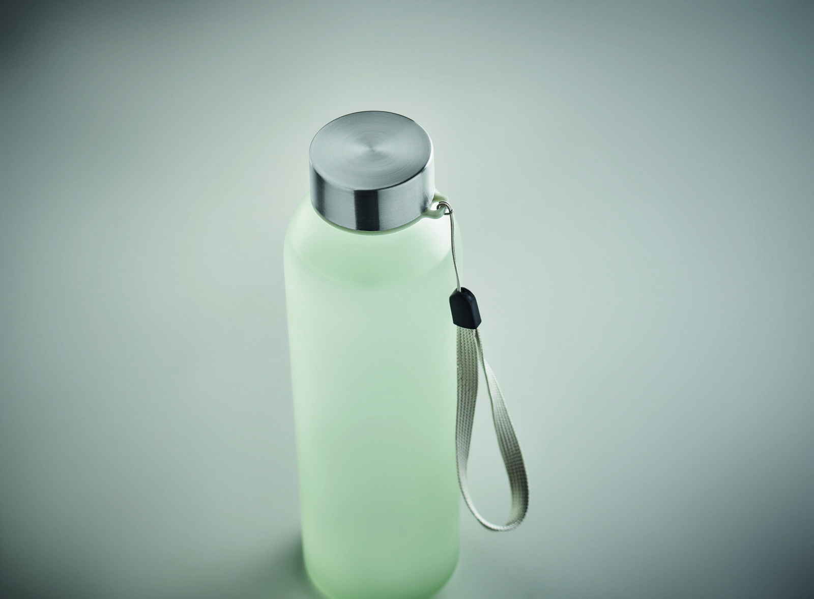 Equipped with a stainless steel lid and a handy hanging strap, this bottle ensures easy carrying on the go. Whether for hydration at work, the gym, or on the move, it holds up to 500 ml of water or beverages. Compact and lightweight at just 318g net weight, with a diameter of 60 mm and height of 215 mm, it combines portability with aesthetic appeal.