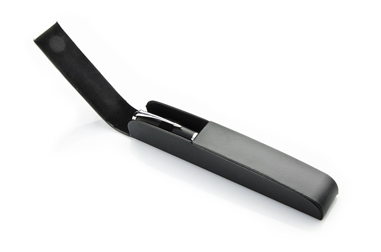 Pen case made of leather-like material (PU) closed with a magnet. It has a wide plate made of brushed aluminum, giving the possibility of making an impressive engraving. Fits pens from 122 to 148 mm in height.