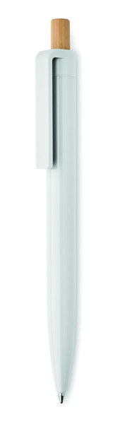 Ball pen in recycled ABS with bamboo push button. Blue ink.