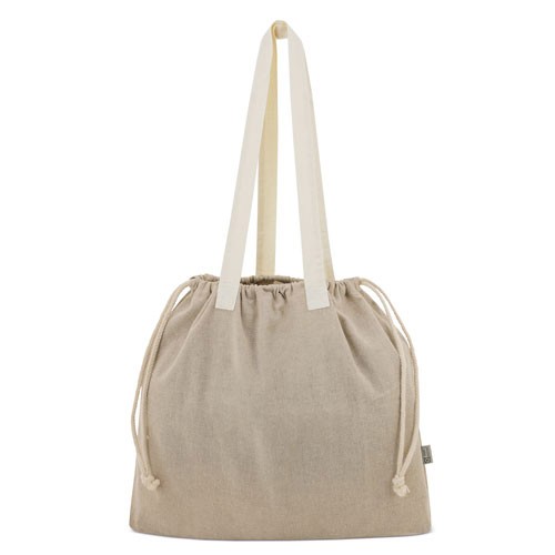 Extra large size bag, made of recycled cottonIt has a braided cord closure to carry your purchases more safely.