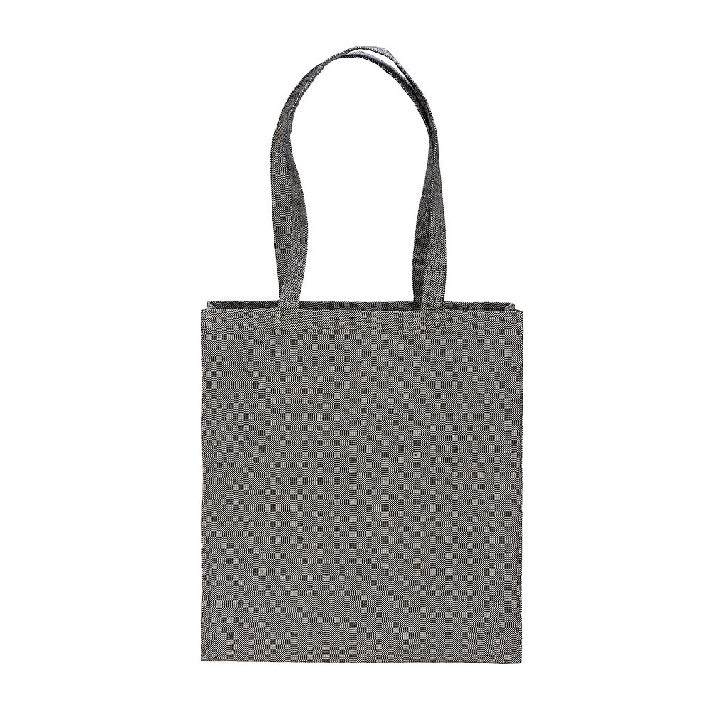 Recycled Cotton Shopper Bag 300 G/M2 With Melange Effect. Long Handles And Gusset - Black