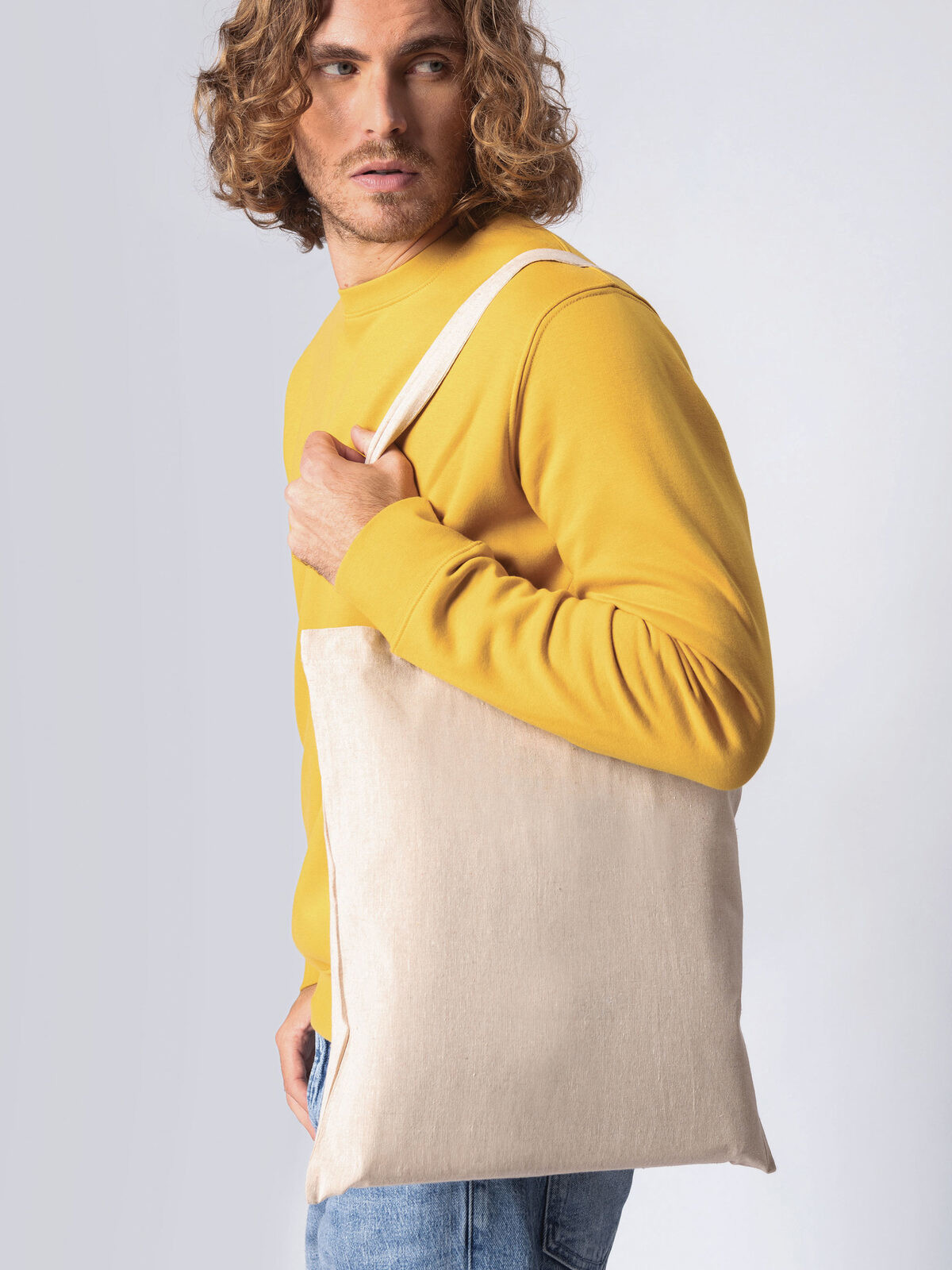 With an ample size of 420 x 380 mm, long handles for comfortable carrying, and a convenient drawstring closure, it combines functionality and eco-friendliness in one sleek design. Despite its lightweight build — just 81 g — it offers solid durability with a quality of approx. 140 gr/m². Please note that light shrinkage may occur after printing.