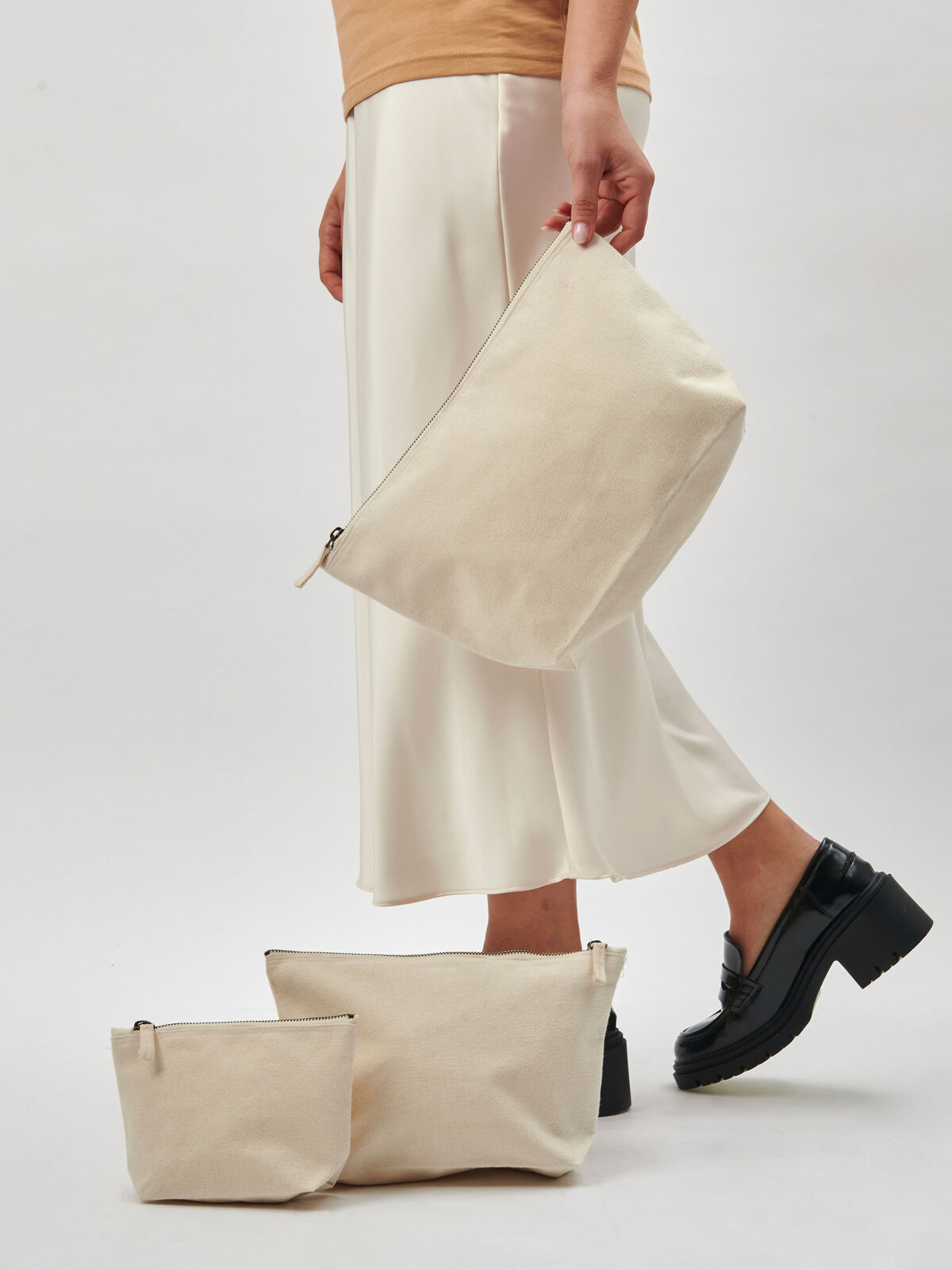 100% organic cotton. Antique metal zip for a vintage effect. Tear-off label. Available in S: 19x12.5 base 6x13cm - M: 28.5x18 base 9x19cm - L: 34x21 base 11x23cm.