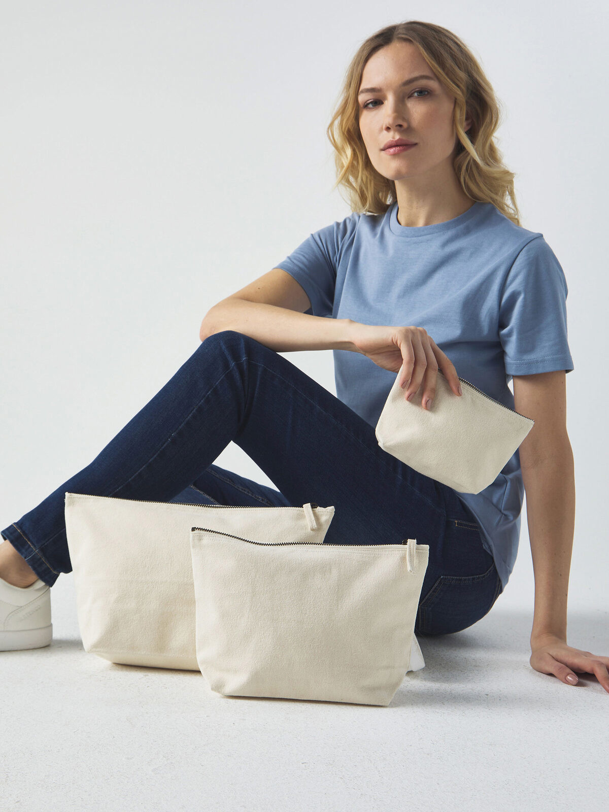 100% organic cotton. Mini clutch bag with antique metal zip for a vintage effect. Tear-off label. Dimensions: S: 19x12.5 base: 6x13cm - M: 28.5x18 base: 9x19cm - L: 34x21 base: 11x23cm.