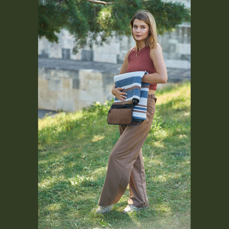 The MoLu RPET picnic or beach blanket is exceptionally practical and functional. It features a flap with a Velcro fastening, allowing for easy folding and convenient carrying. An additional zippered pocket provides space for small items such as keys, a phone, or sunglasses, ensuring that all essentials are kept within easy reach. The water-repellent underside protects against moisture, guaranteeing a comfortable experience whether at a picnic or on the beach. The blanket bears the distinguished MoLu brand. This picnic or beach blanket is the perfect accessory for leisurely outdoor days and serves as an attractive promotional gift that combines both functionality and elegance.