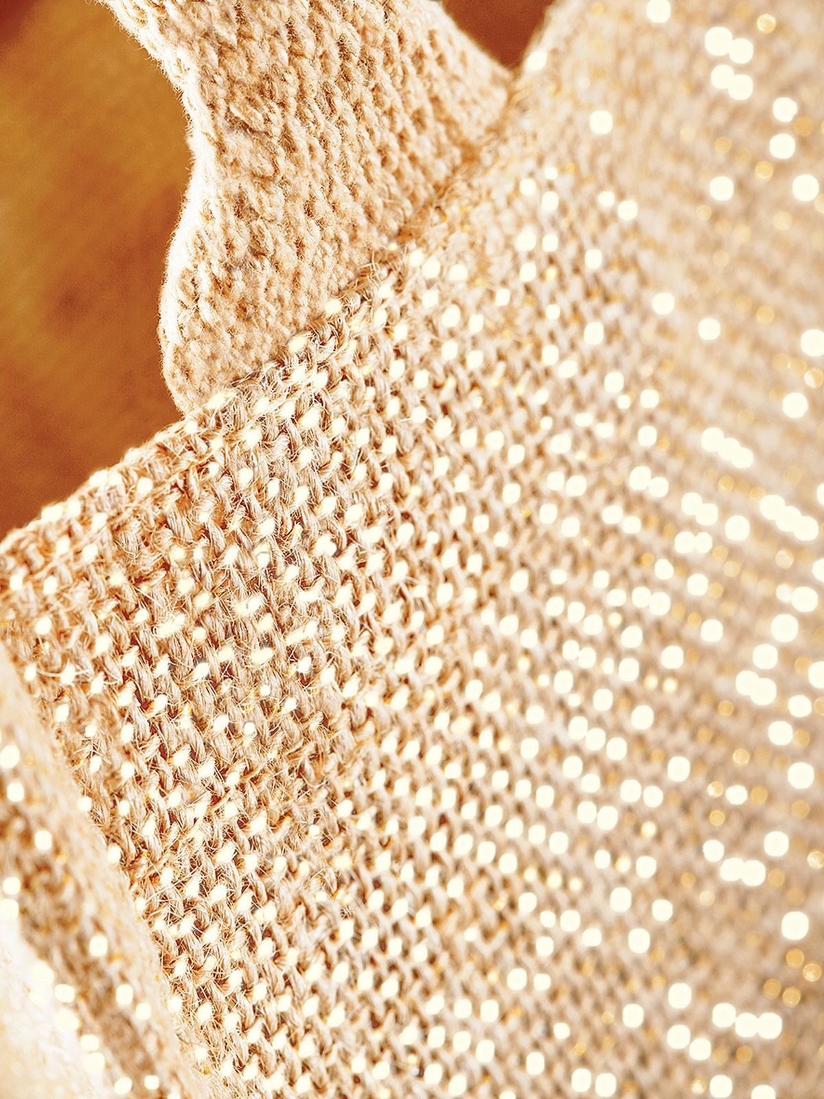 98% Laminated Jute 2% Metallised Fibre. Shopper bag with 35 cm cotton handles and removable label for easy customization. Dimensions: 26x22x14cm. Capacity: 6 liters. Printable area: 18x14cm.
