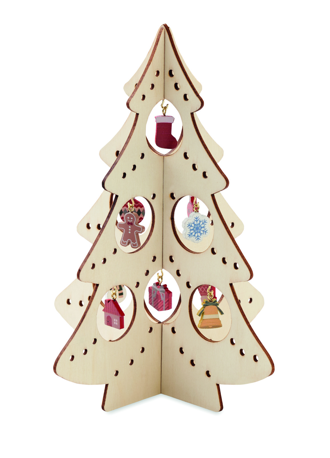 Silueta wooden Xmas tree, 10 ornaments, 198 mm
