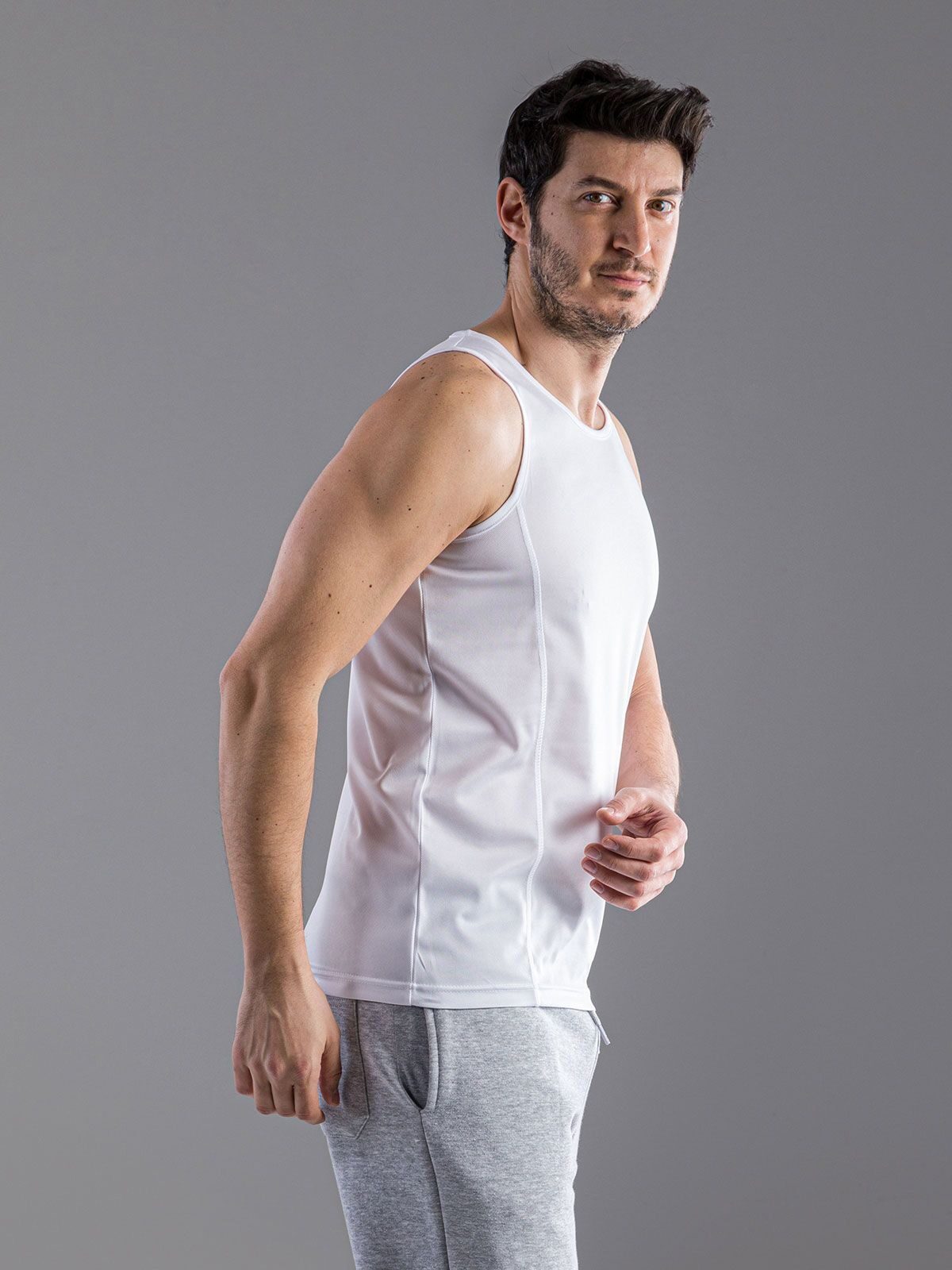 100% cotton. Unisex tank top perfect for sports and the beach with a wide armhole. Tear-off label. Fluo colors: 100% polyester.