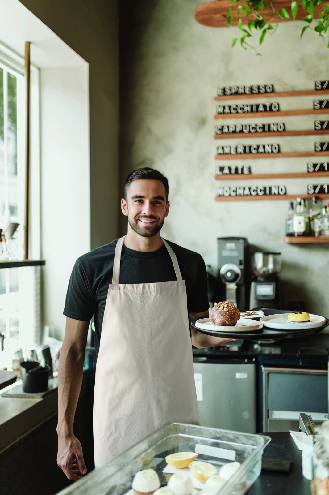 Choose the Jared short apron to combine functionality, stylish presentation, and a professional brand impression — your team and your image will thank you.