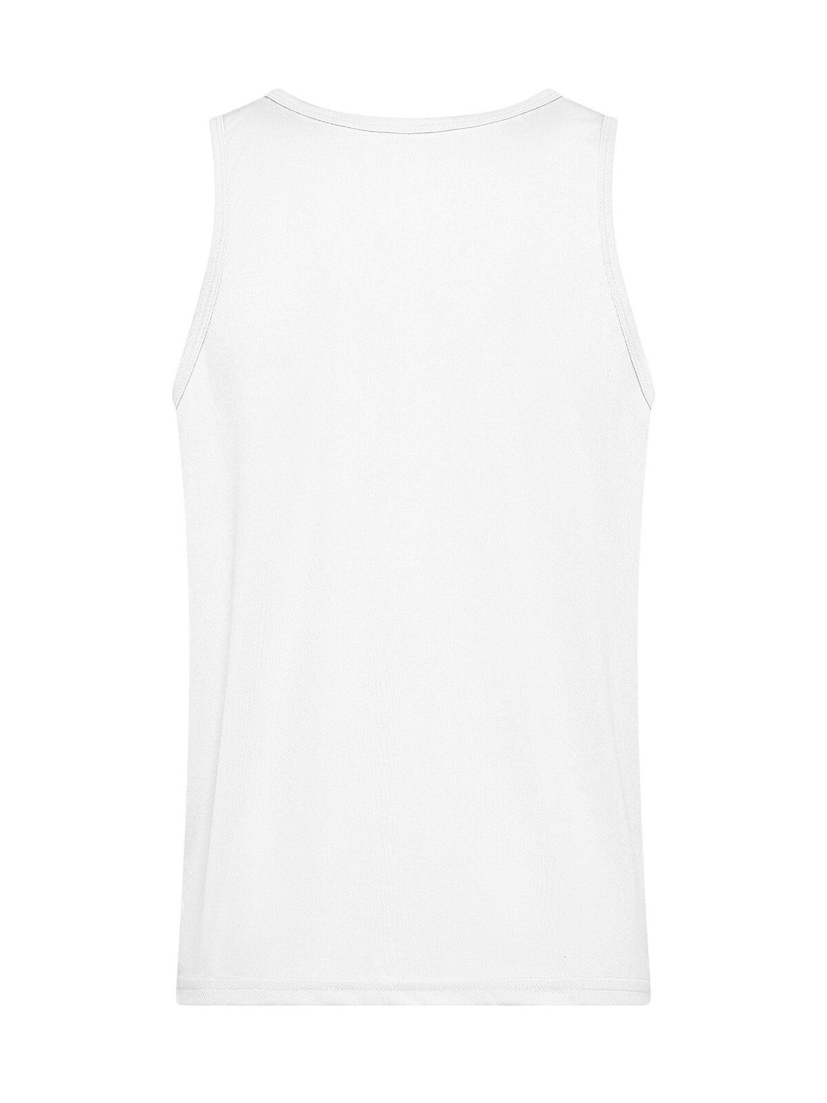 100% polyester. Tank top with round neck and flared armholes, breathable fabric, structure with side seams. Tear-Away label.