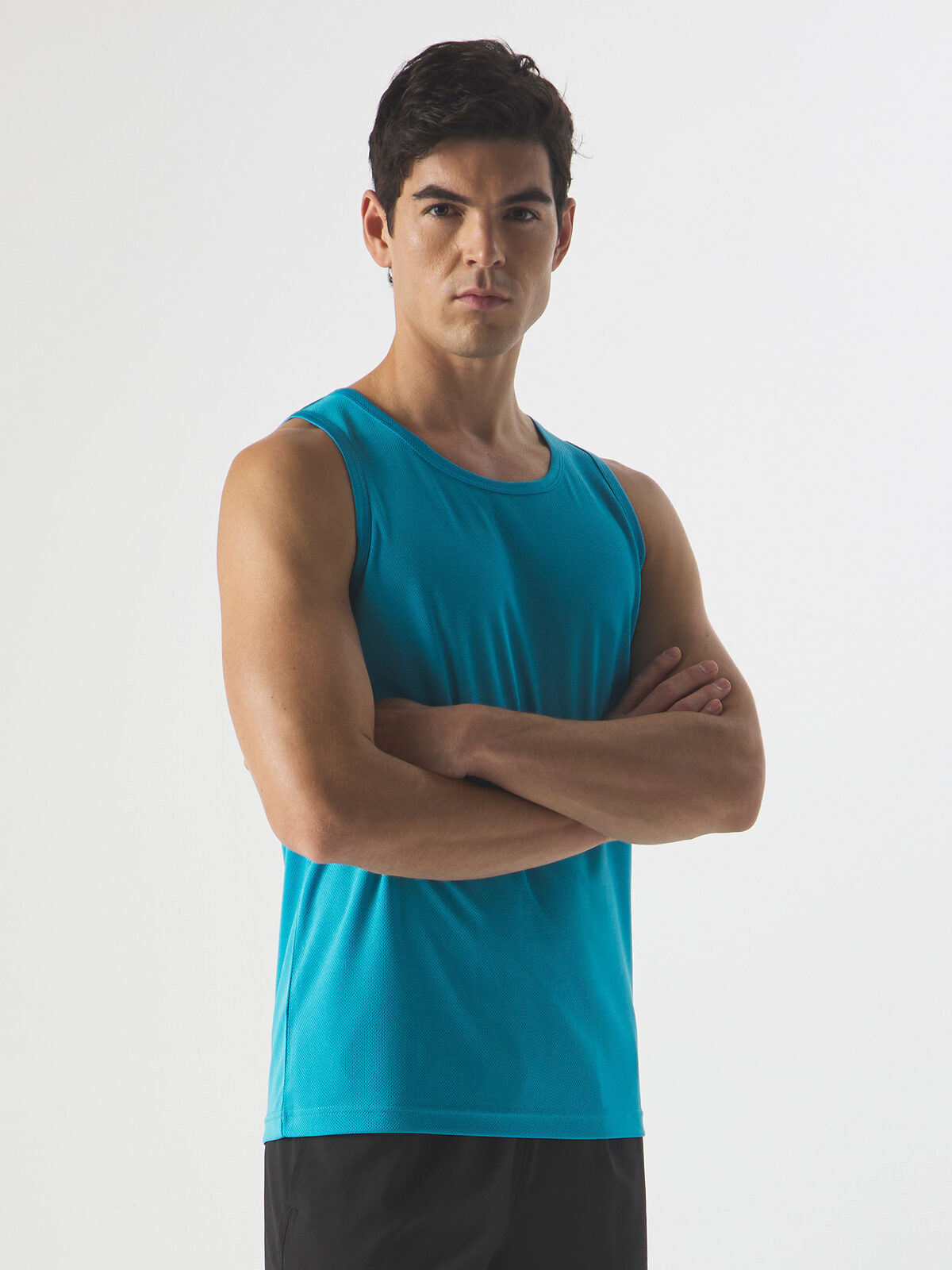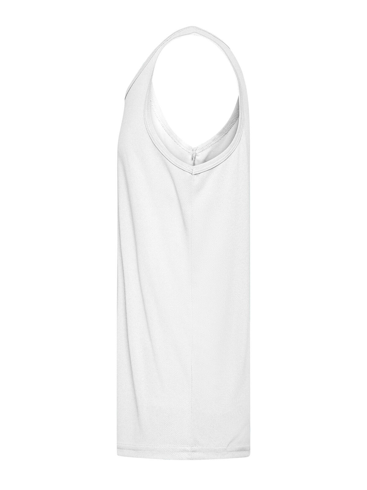 100% polyester. Technical tank top in breathable fabric for maximum comfort and ease of washing, comfortable fit, tearable label. Without side seams, ideal for customization. Perfect for allover sublimation.