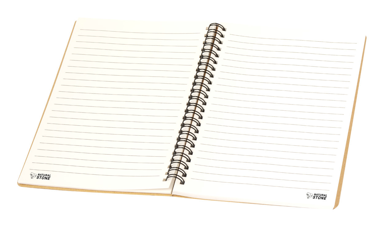 Recycled paper covered stone paper spiral notebook with 70 lined sheets, A5 size.
