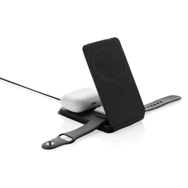 Elevate your brand's image with the Swiss Peak RCS rPU 15W 3-in-1 Magnetic Wireless Charger — a premium gift combining elegant functionality with sustainable innovation. Designed for the modern professional, this foldable and luxurious wireless charger is crafted from RCS-certified recycled PU, boasting a 5% recycled content by total weight and ensuring a transparent, traceable supply chain.