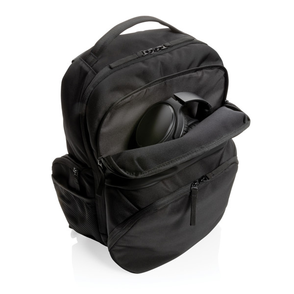 Make an impact with the Swiss Peak AWARE™ RPET 15.6 inch Commuter Backpack – a premium choice for modern professionals and a memorable corporate gift. Engineered for everyday functionality, this sleek backpack features thoughtful design and smart organization with two roomy front compartments, a spacious main section, and a dedicated 15.6" laptop pocket to safeguard your tech on the go.