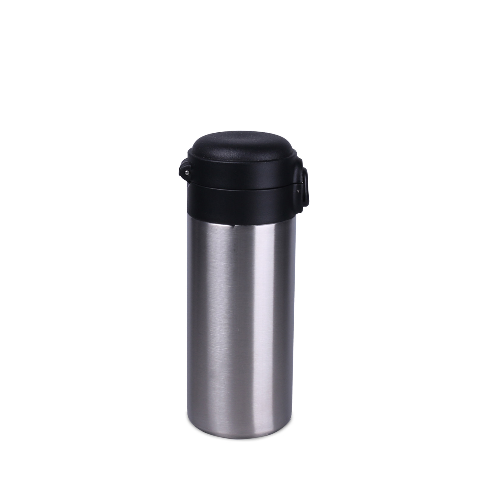 Imagine the comfort of drinking without any compromises... By choosing a Vega mug, you are guaranteed high ergonomics and comfort. This is due to the use of vacuum insulation, a hygienic and extremely comfortable mouthpiece made of safe and odorless material, a convenient "1-click" opening and a cover with the "Keep Open" position. The model is available in an eye-catching Steel color version, perfect for applying color. The Vega thermal mug is sold complete with dedicated packaging.