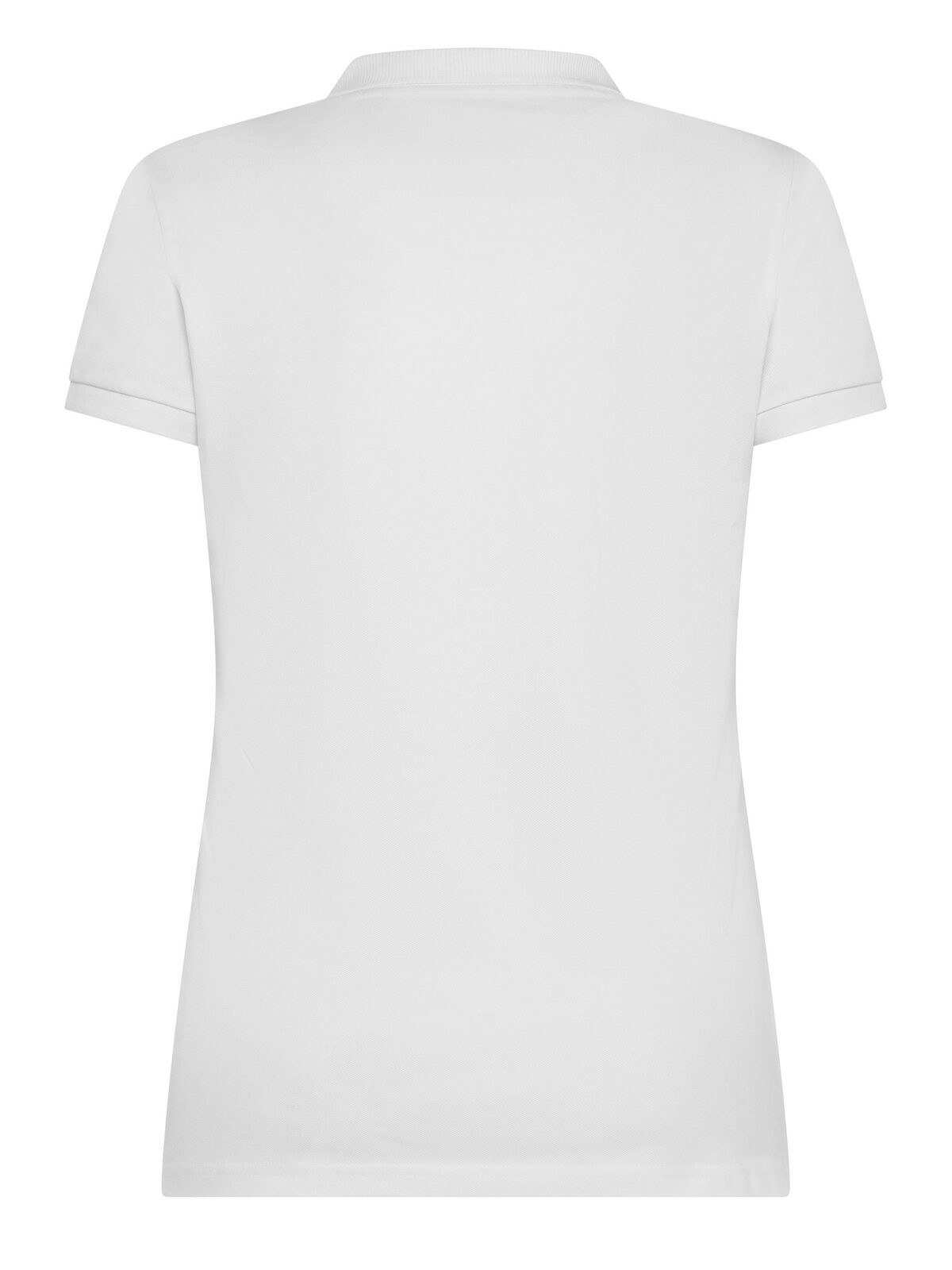 95% organic cotton in conversion, 5% elastane. Slim-fit women's polo shirt in soft eco-sustainable fabric. Short set-in sleeves, structure with stitching and side vents, 4 tone-on-tone buttons. Collar and hem of the sleeves with flat rib, slightly fitted. Woven cut label around the neck and label with logo, composition, washing instructions on the tearable side.