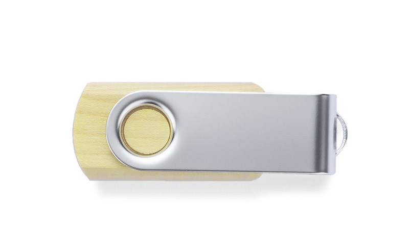 Compact, made of metal and maple wood, portable USB memory stick, capacity 16 GB. Marking possible on both sides of metal casing. USB memory stick comes with a 5 years limited warranty.