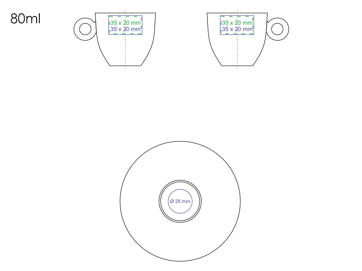 Each cup boasts a generous 80 ml capacity—perfect for rich, aromatic espresso shots—and comes paired with an elegant matching saucer. With a compact diameter of 60 mm and a weight of just 178 g, it’s an ideal promotional item that combines aesthetics with practicality.