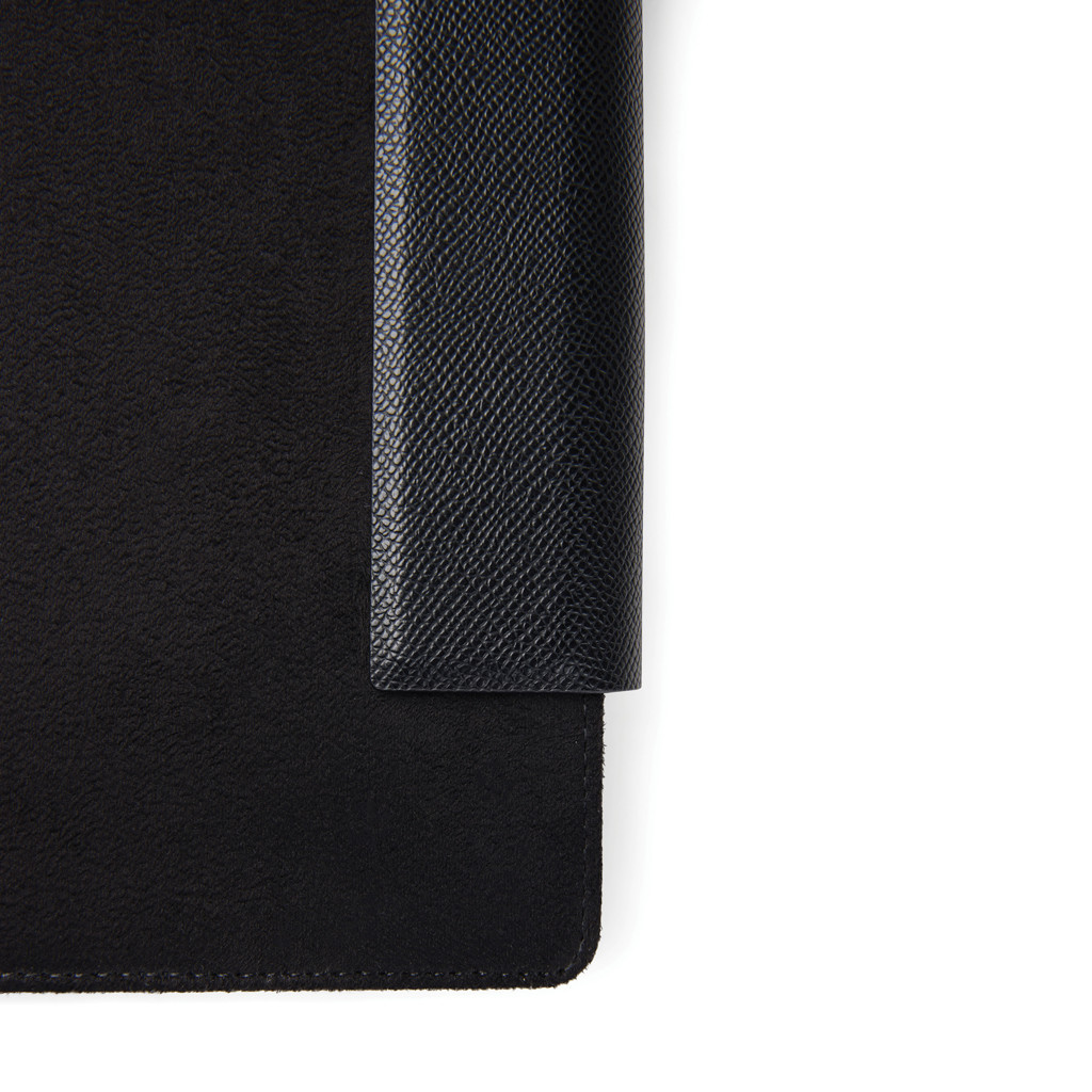 Its soft paper cover provides a professional look and is equipped with a dedicated pen holder, securely attaching the matching ballpoint pen that’s crafted from recycled carton and biodegradable plastic. The pen features a smooth-writing, push-button mechanism with blue ink—making it both stylish and responsible.